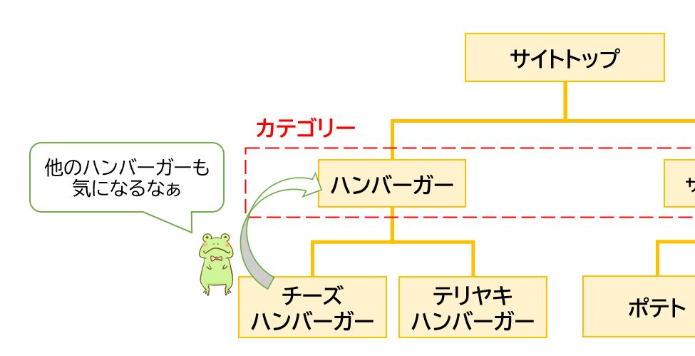 例えばハンバーガーの場合、「ホーム>ハンバーガー」というように、「ハンバーガー」というキーワードにおいてSEO対策になります。