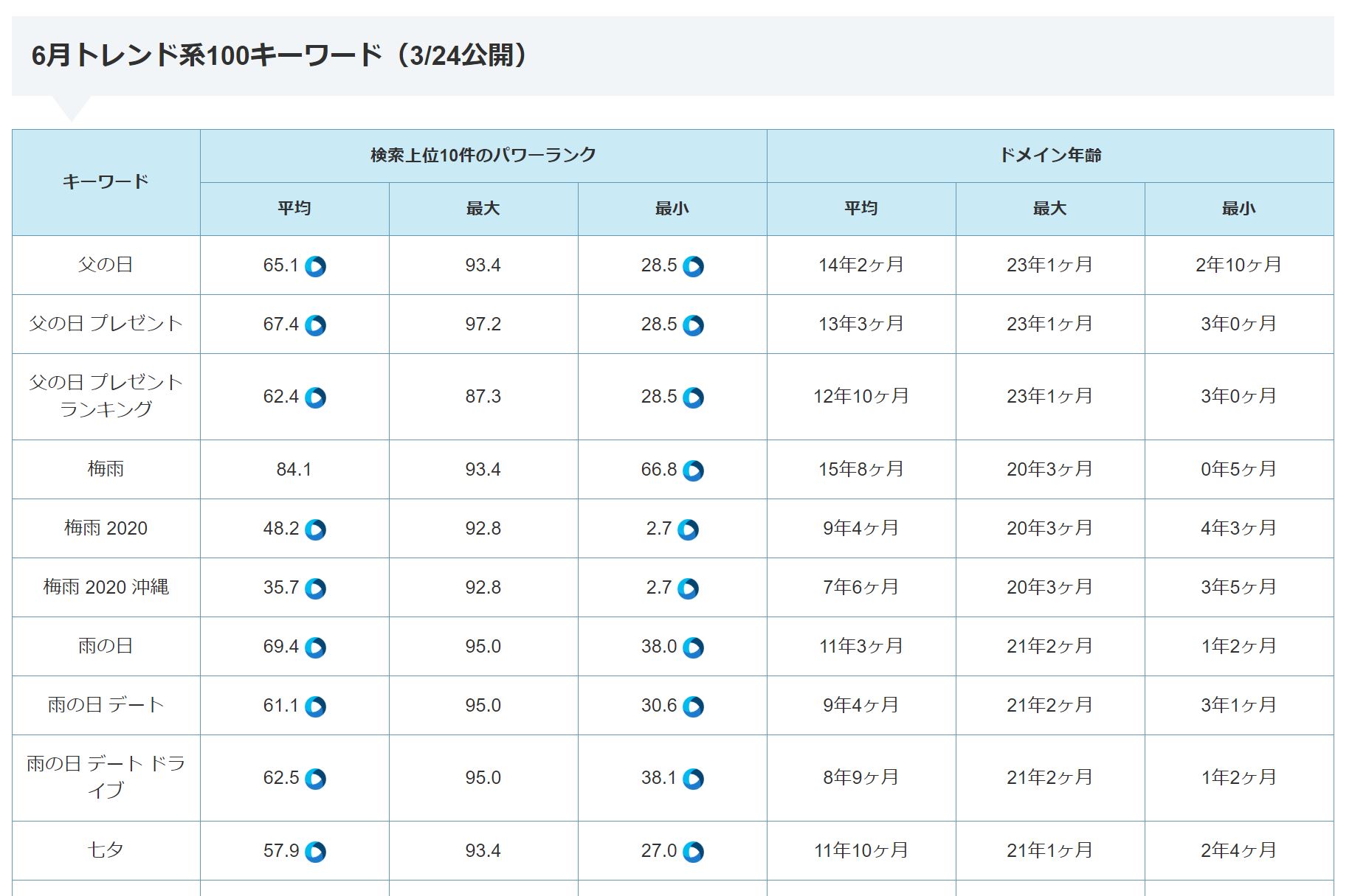 キーワードによって検索上位10件のドメインパワーの目安になります。